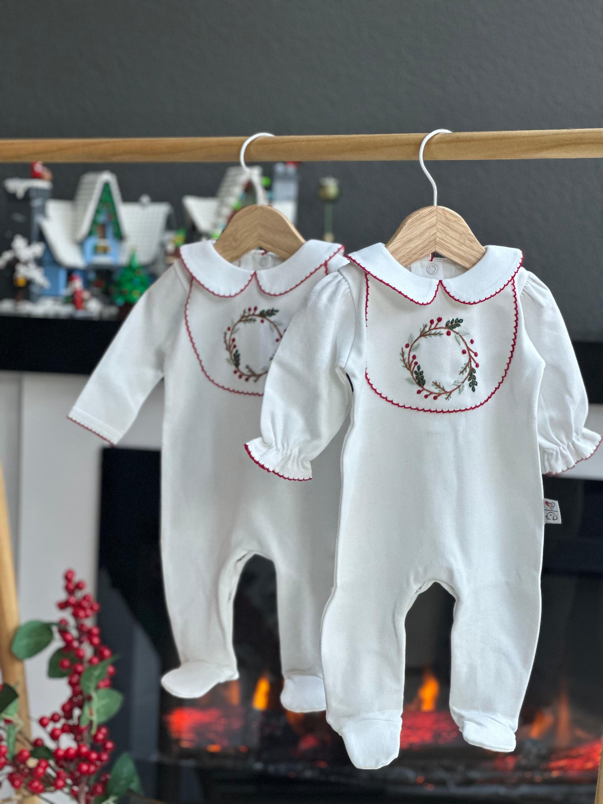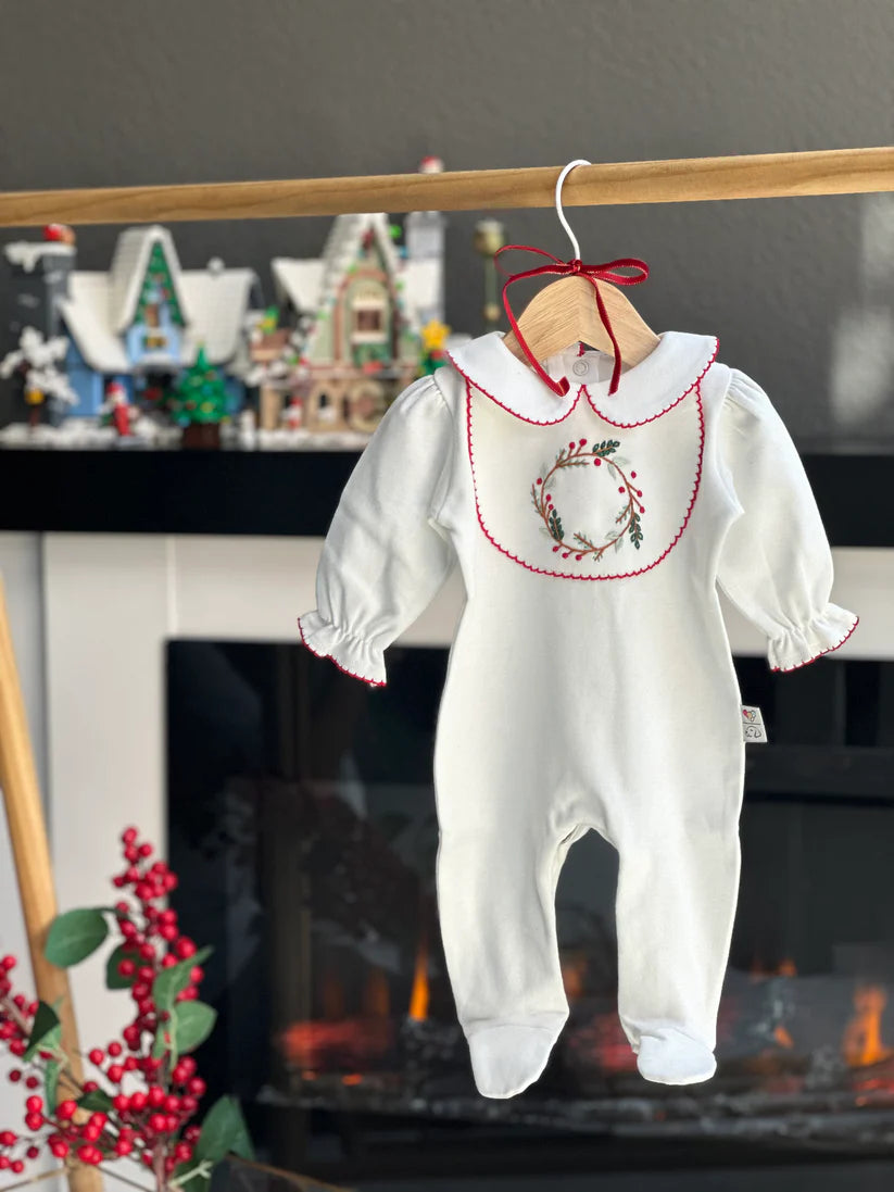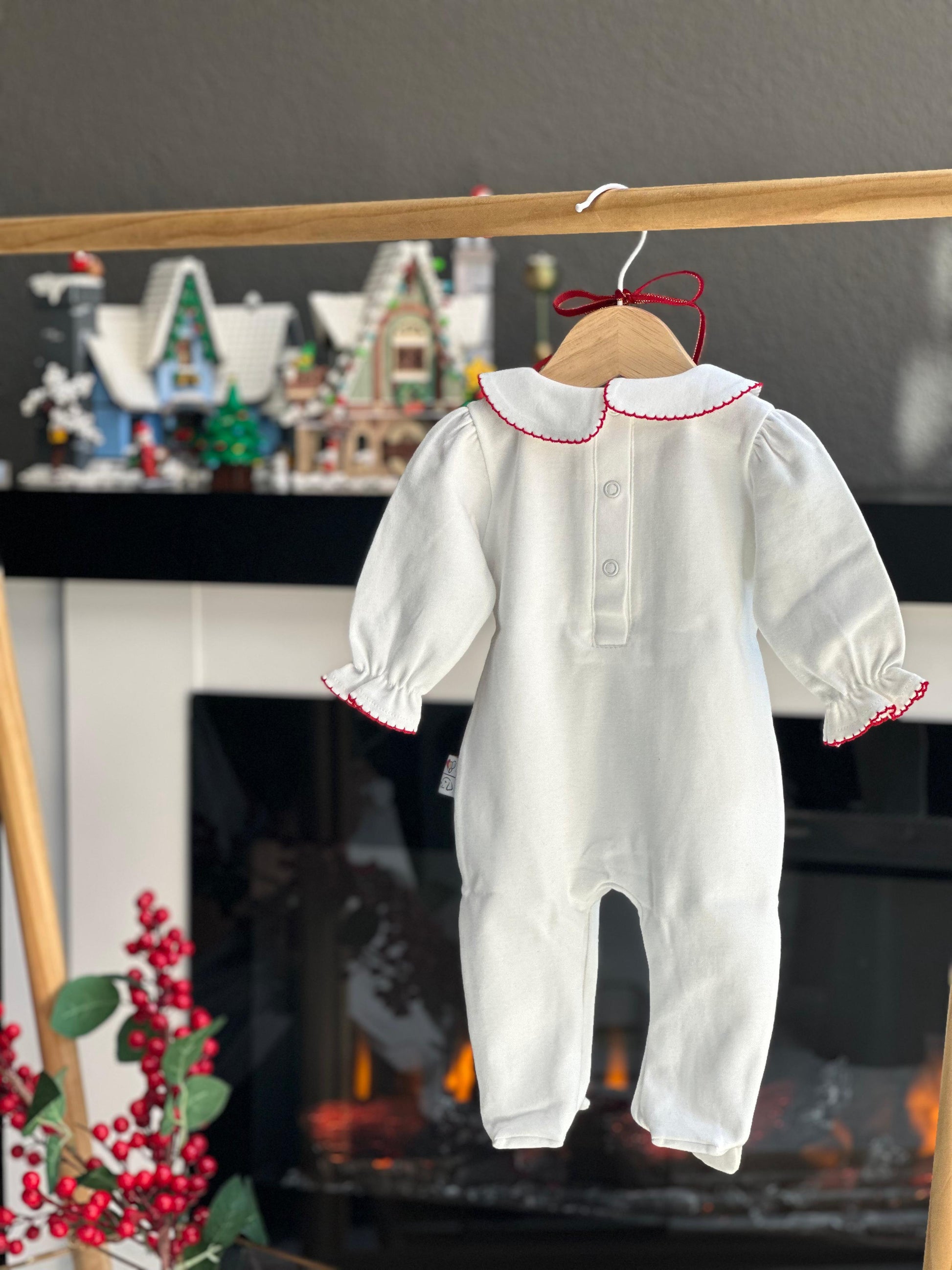 - Yılbaşı nakışlı bebe yaka önlük model , arkadan ve alttan çıtçıtlı tulum