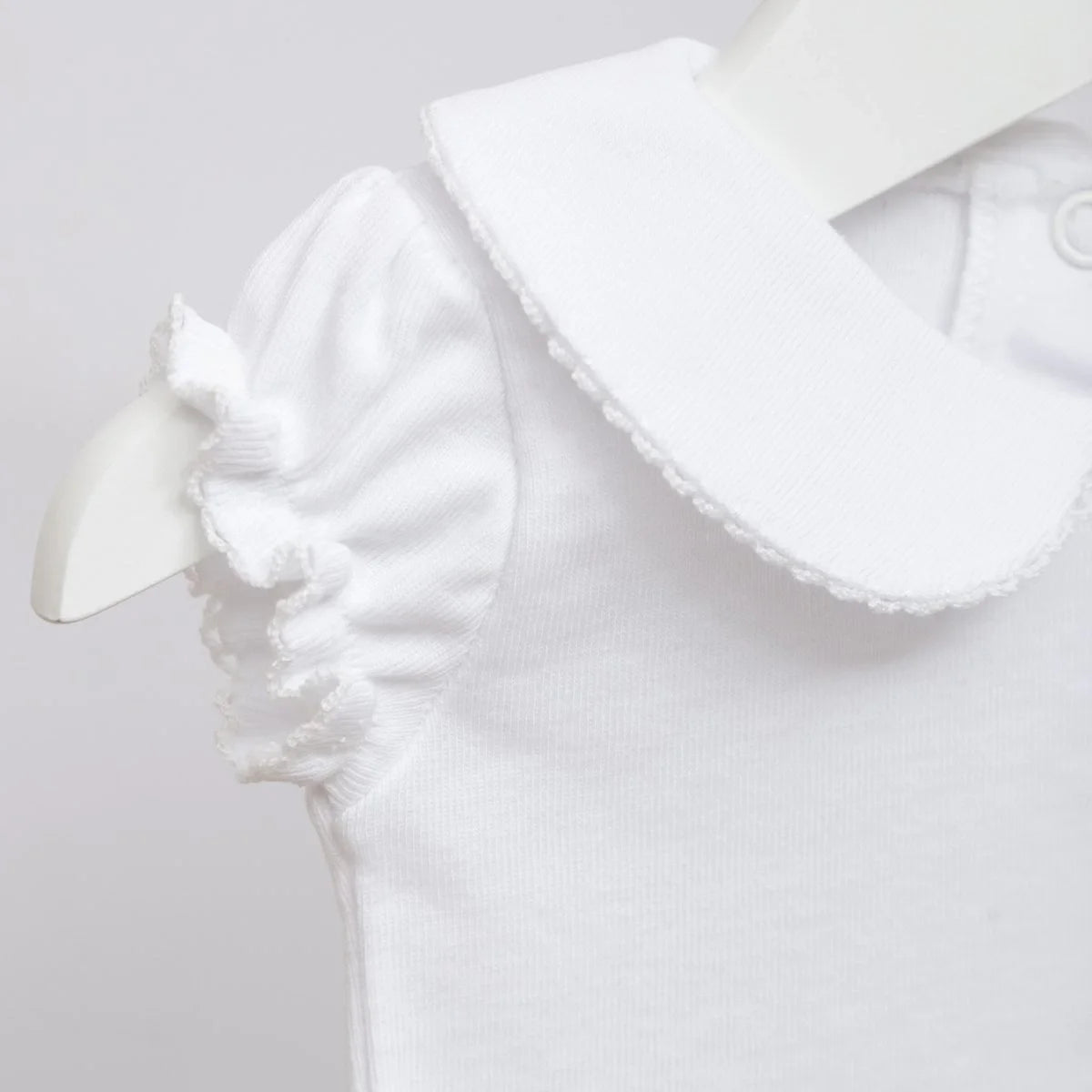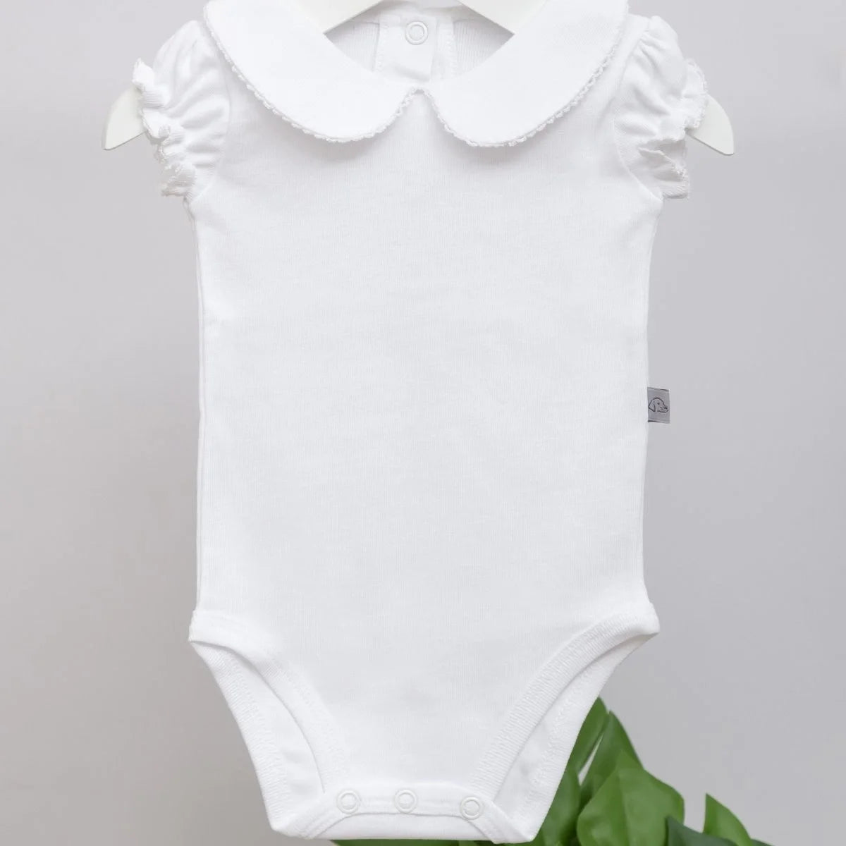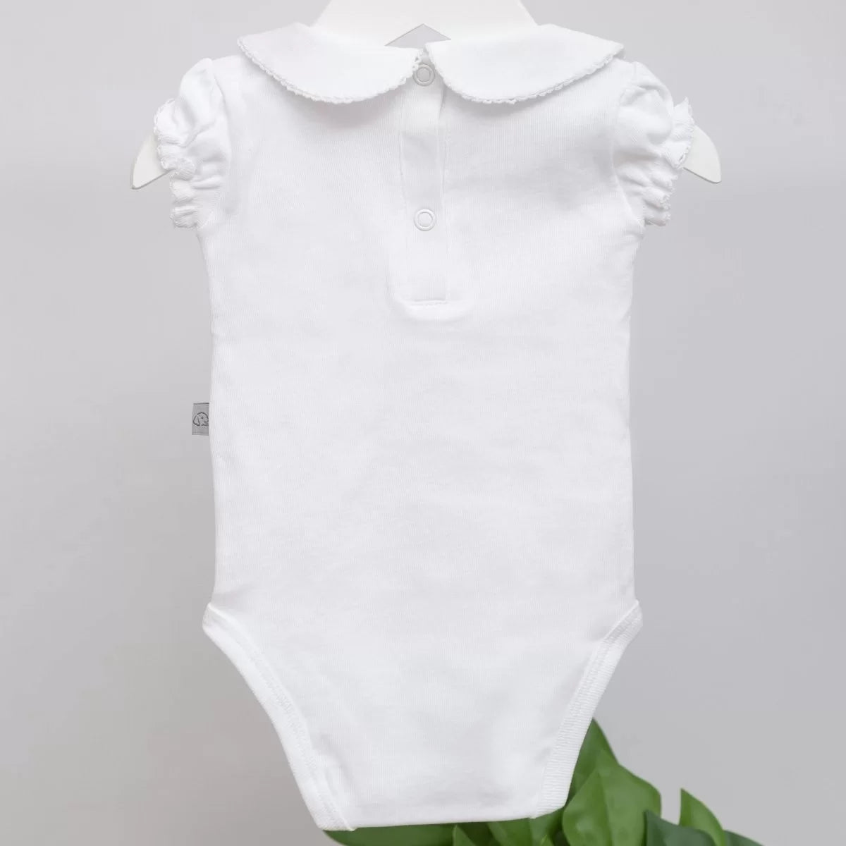 Tığ işi Süslemeli Kısa Büzgü Kol Bebe Yaka Body | Organik Pamuk